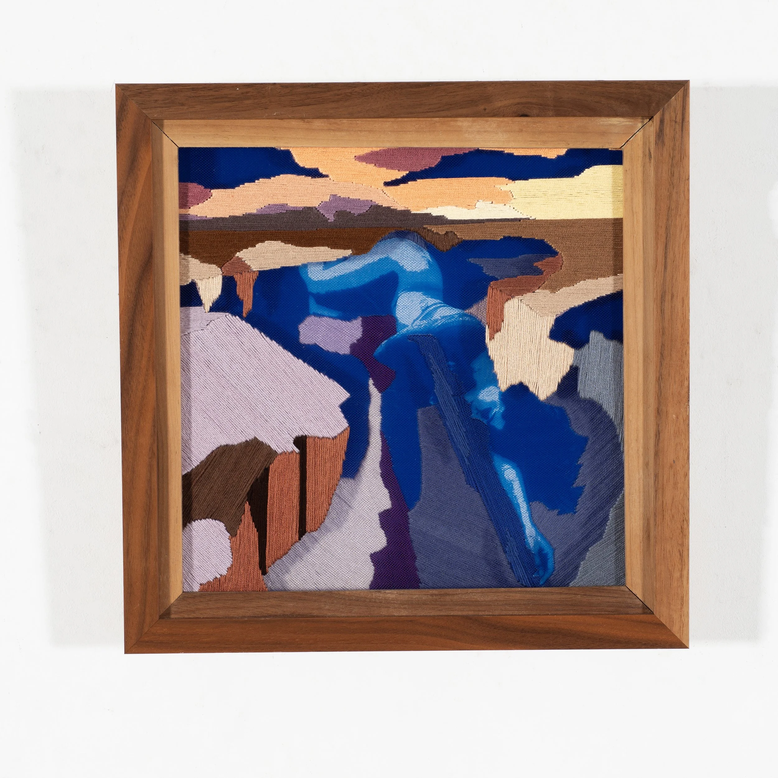 I specialize in contemporary fiber art that blends the tradition of craft with fine art. My primary work is embroidered paintings, which showcase vibrant blocks of color sewn onto translucent fabric, allowing exploration of the interplay between positive and negative space.